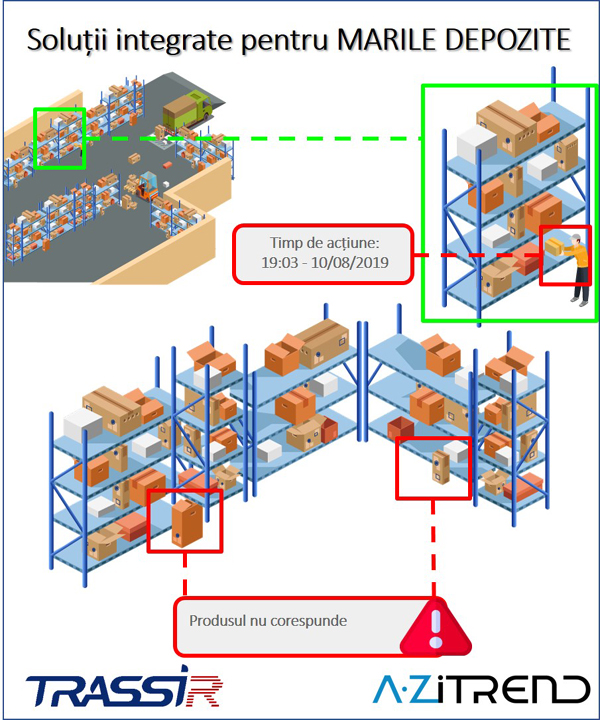 Activitatea in marile depozite necesita sisteme de control si urmarire extrem de performante. Pentru identificarea fiecarei tranzactii este nevoie in permanenta ca procesele sa fie inregistrate video. Doar astfel se poate determina cu precizie modul in care a fost executata orice operatie, ce traseu au urmat marfurile din momentul accesarii depozitului si pana la expeditie.