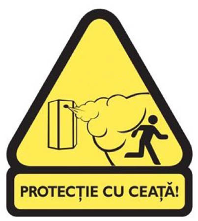 • sa existe insemne in obiectiv care sa informeze toate persoanele despre existenta unui sistem de securitate cu ceata instalat;
