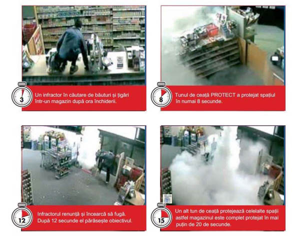 • dupa o tentativa de efractie, obiectivele protejate cu tunuri de ceata isi pot relua activitatea mai repede;