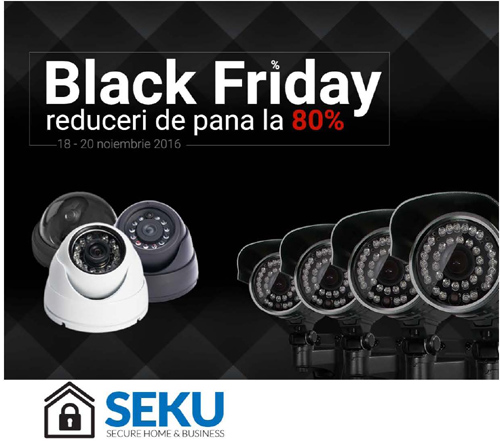 Seku.ro intra in cursa reducerilor si organizeaza in perioada 18-20 noiembrie 2016, prima sa editie de Black Friday, pregatindu-le clientilor reduceri semnificative pentru toata gama de produse. Astfel, clientii online vor putea achizitiona solutii de securitate pentru casa si birou, cu reduceri de pana la 80%.